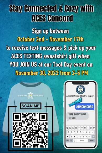 Sign up between October 2nd - November 17th to receive ACES Concord branch updates through text messaging. Joining is easy, just scan the QR code above or visit us at 2900 Armentrout Dr. Concord, NC 28025.